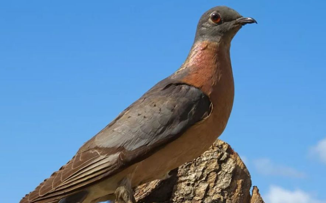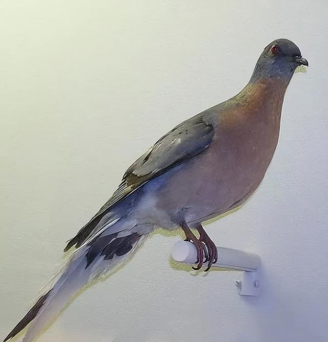 雌性旅鸽和雄性旅鸽的外形也不太一样,雌性旅鸽的胸脯常常为红色,翅膀为红褐色,雄性旅鸽的翅膀则是灰绿色。