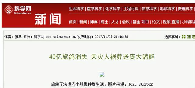 信息来源 新闻 科学网 40亿旅鸽消失 天灾人祸葬送庞大鸽群 2017-11-27